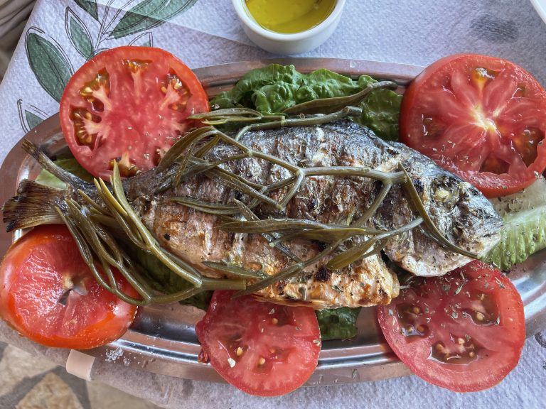As you would imagine the food in this part of Greece is spectacular. Whether it is the fish freshly landed each day at the harbour in Koroni, the fabulous fruit and vegetables grown nearby or the abundance of oil and olives from the hundreds of trees that surround our village, you won’t go hungry. And whether you want to cook at home or eat out, there is so much to choose from.